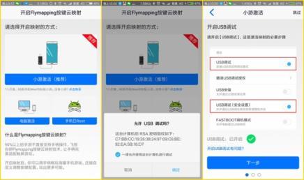按照提示开启悬浮窗,并按照提醒开启按键映照和USB调试。按键映照能够通过三类体例,用随机附送的小逛适配器、电脑激、手机Root激,当然最便利的仍是用小逛激了。