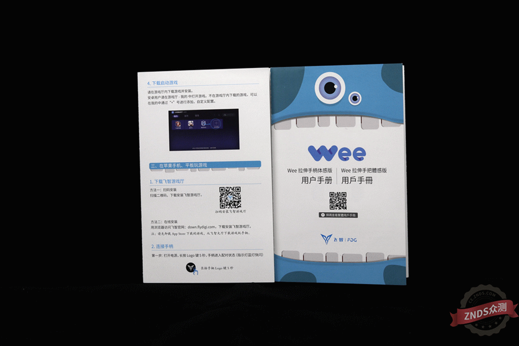 仿单为精彩彩印版本,上面细致的引见了产物各部名称,以及收撑手机尺寸、初次利用留意事项以及按步调的利用操做申明和体感功能若何利用。很是详实,如还无不懂的处所,也能够扫描仿单上的二维码到官方的公寡号去看电女版仿单。