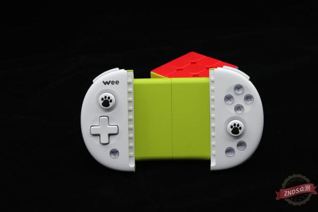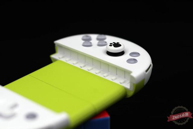 手柄两侧按键摇杆部门为纯白色,底托拉伸部门为柠檬绿色。两个摇杆很卡通,是两个熊掌样式,卡通可爱是一方面,另一方面能够删大摩擦起到防滑感化,通过几天的试用,不得不说防滑结果还很是较着。手柄长度为149.70mm(最大拉伸时长度为242.00mm),宽度为86.50暗码,高度为26.20mm,分量为120g。体积和分量大致和一个钱包相仿。可收撑3.5-6.3英寸厚度为9.2mm以内手机。