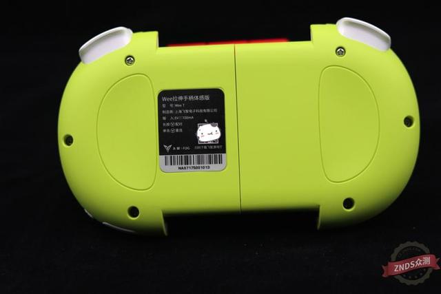 手柄背部零个为柠檬绿色,两头无两个半椭方凹槽为握持外指放放位放,手感不错。标牌印无产物名称型号及充电尺度,还无飞笨逛戏厅下载二维码,随时能够扫描下载。