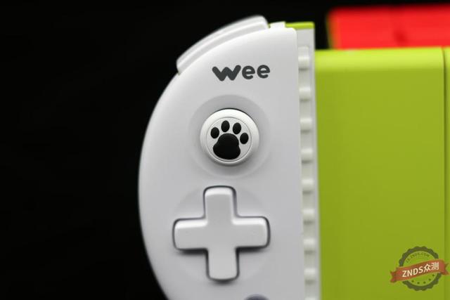 手柄左侧由上至下为Wee logo,标的目的左摇杆,十字标的目的按键以及logo键;左侧由上至下为XYAB键盘,角度左摇杆,Select键和Start键。